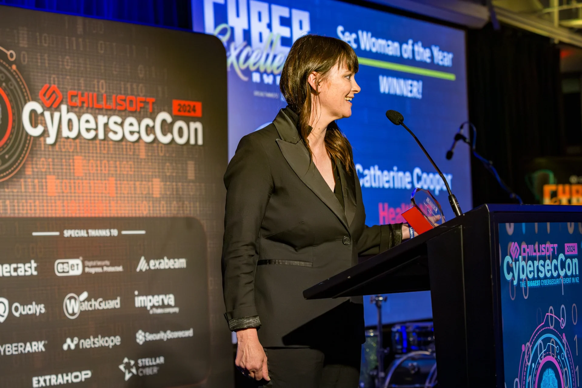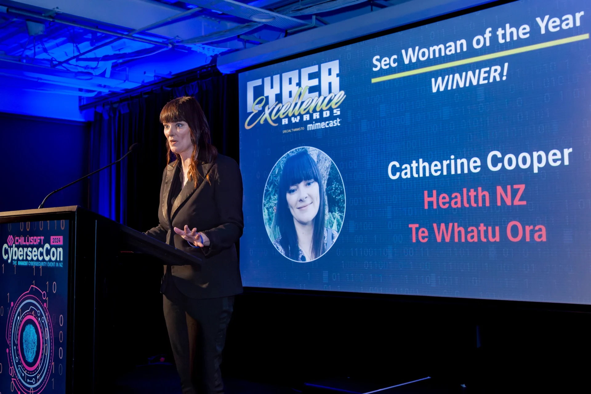 For her work on cyber security and partnerships she received the NZ Cybersec Woman of the Year excellence award in 2023.